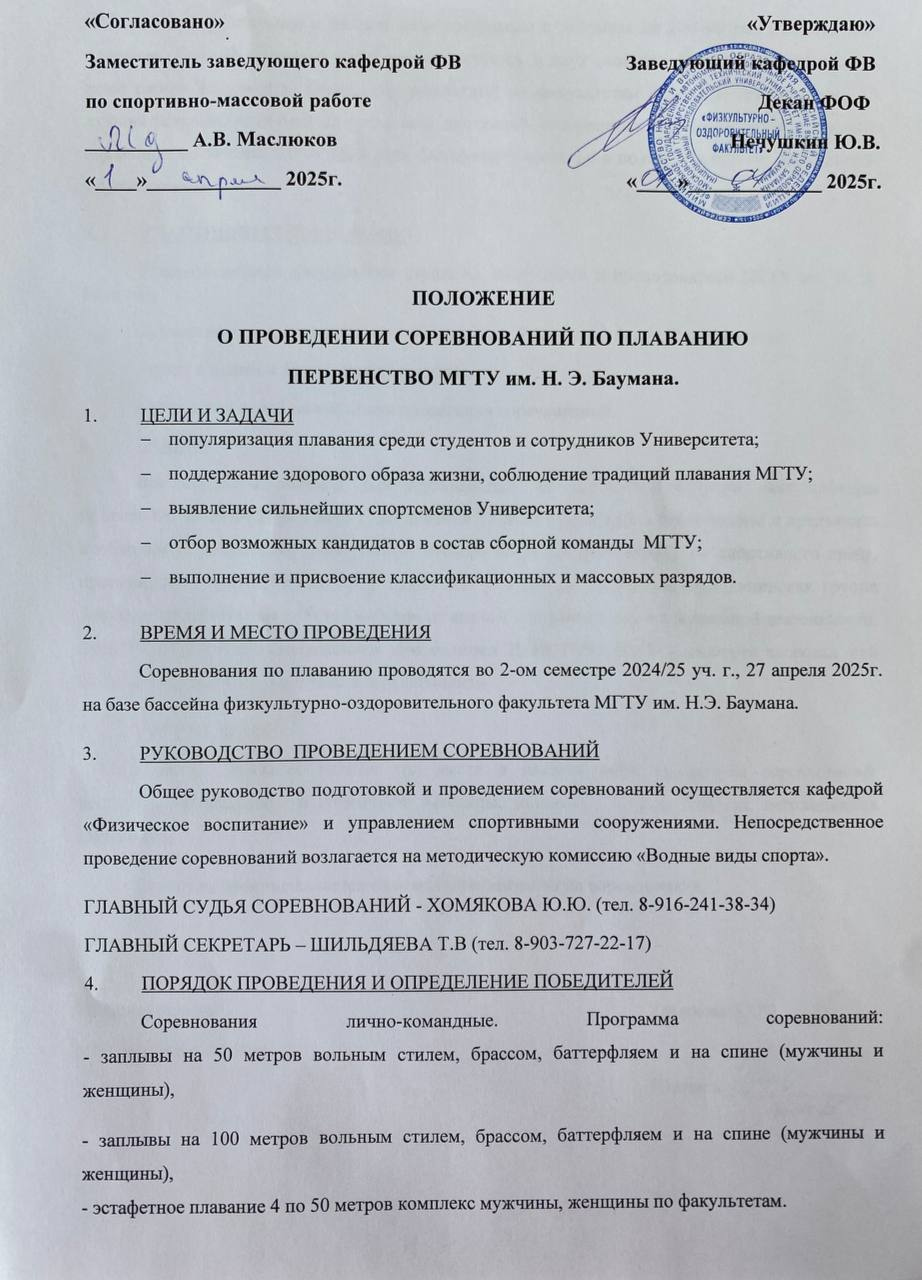ПО ИТОГАМ СОРЕВНОВАНИЙ СОСТОИТСЯ ОТБОР СТУДЕНТОВ, ЖЕЛАЮЩИХ ЗАНИМАТЬСЯ В ГРУППАХ СПОРТИВНОЙ ПОДГОТОВКИ ПО ПЛАВАНИЮ (по вопросам обращаться к гл. судье соревнований Хомяковой Ю.Ю. uuhomjakova@bmstu.ru)