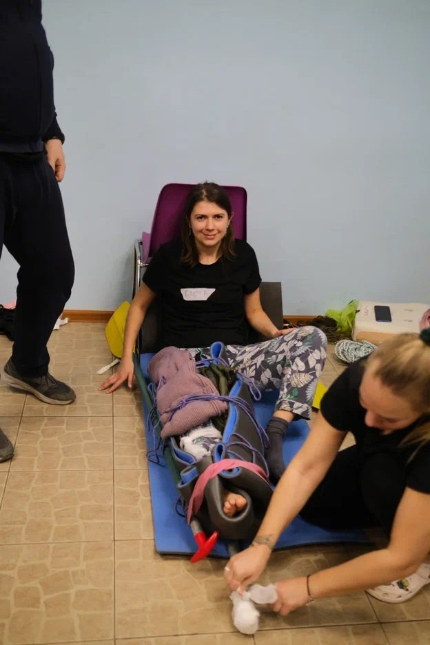 2 дня ребята упражнялись в десмургии и ситуативных задачах, работали с манекенами и придумывали, как из подручных средств можно сделать шины и носилки.